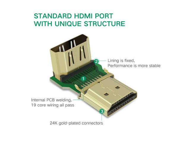 Ugreen HDMI kutni adapter pruža vam potrebnu fleksibilnost bez rizika od prekomjernog savijanja HDMI kabela, što može oštetiti kabel ili čak oštetiti spojeve s vašom opremom.