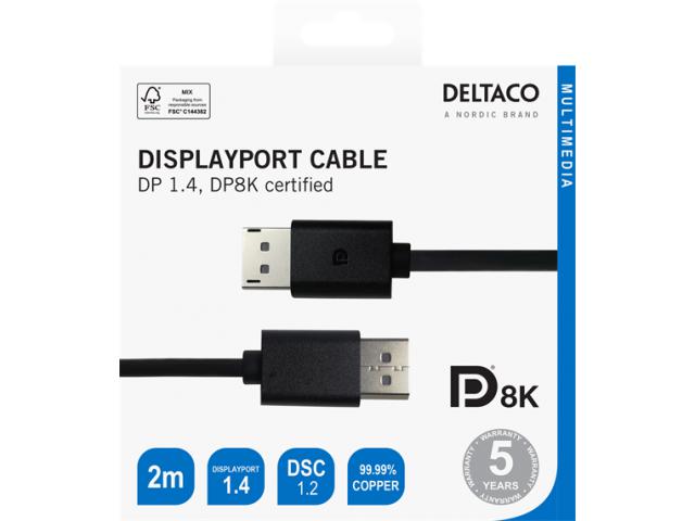 DELTACO DisplayPort kabel, 8K, DP 1.4, 2m, crni