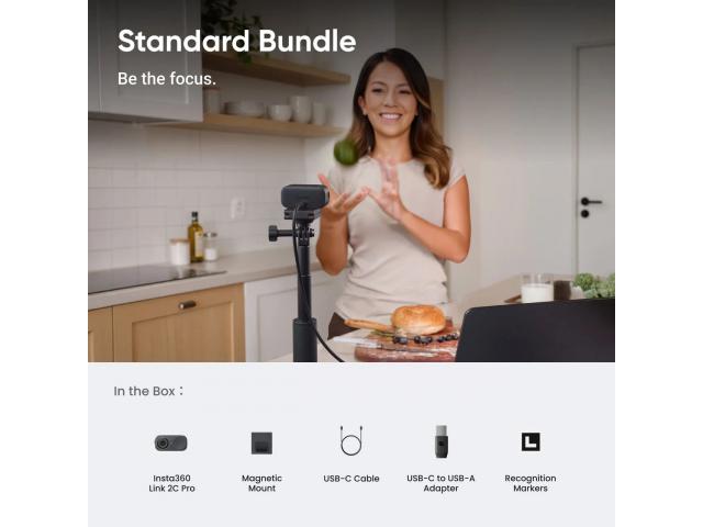 Insta360 Link 2C Pro Graphite Black je AI 4K web-kamera visokih performansi, dizajnirana za video pozive, streaming, prezentacije i online sastanke s inteligentnim funkcijama kao što su automatsko kadriranje i AI optimizirani zvuk, sve bez mehaničkog gimbala. Realistična jasnoća i detalji u bilo kojem osvjetljenju, pogonjeni vodećim 1/1,3" senzorom s izvanrednim performansama u uvjetima slabog osvjetljenja. Veći senzor od 1/1,3" s ekvivalentnom veličinom piksela od 2,4 µm nudi 2,23 puta veću fotoosjetljivu površinu od Link 2, pružajući zapanjujuće detalje i dinamički raspon. Jasan, živopisan video u svim uvjetima, od tamnih kućnih ureda do svijetlih studija. Napredna obrada slike osigurava savršeno uravnotežene vizualne prikaze za bolju prezentaciju. Inteligentno prepoznaje ljude i prilagođava dubinu polja u stvarnom vremenu. Profesionalno, filmsko, održavajući vas jasnim i oštrim. Gimbal se fizički pomiče i naginje kako bi pratio vaše pokrete po prostoriji, držeći sve u kadru. Odaberite želite li pratiti jednu osobu ili grupu na Link Controlleru, sve to uz mogućnost definiranja zona za dosljedno kadriranje i privatnost.