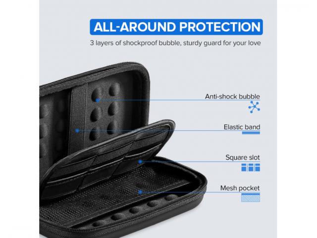 Ova kutija za tvrdi disk ima 2 sloja dizajna otpornog na udarce, jednu vanjsku EVA školjku i jednu mekanu unutarnju oblogu s otpornom okruglom izbočinom, nudeći bolju zaštitu za vaše skupe tvrde diskove od jeftinih kutija.
