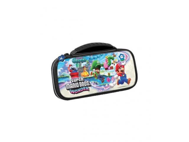 Sigurno pohranite, organizirajte i prenesite svoju igraću konzolu u čvrstoj kutiji ove službeno licencirane putne torbe s temom SUPER MARIO WONDER. Službeni motiv igre možete vidjeti na Nintendo Switch, Nintendo Switch Lite ili Nintendo Switch OLED putnoj torbici.