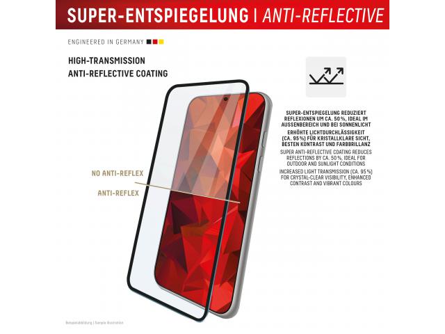Izrađeno je od kaljenog stakla tvrdoće 10H, što znači da je otpornije na ogrebotine, udarce i lomove od većine konkurenata, čak i od safira korištenog u luksuznim satovima (9H). Rubovi su posebno ojačani i višestruko polirani za dodatnu otpornost, a zahvaljujući ultra-tankoj debljini od 0,3 mm, staklo je kompatibilno sa svim standardnim maskama. Visokotehnološki plazma premaz odbija otiske prstiju i olakšava listanje, dok integrirana zaštita od rasprskavanja garantira sigurnost čak i u slučaju loma stakla. Ugradnja je jednostavna i precizna uz EASY-ON® Eco Mounting Frame izrađen od 100% recikliranog, čvrstog kartona.