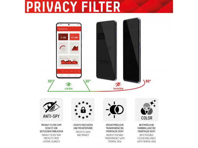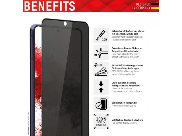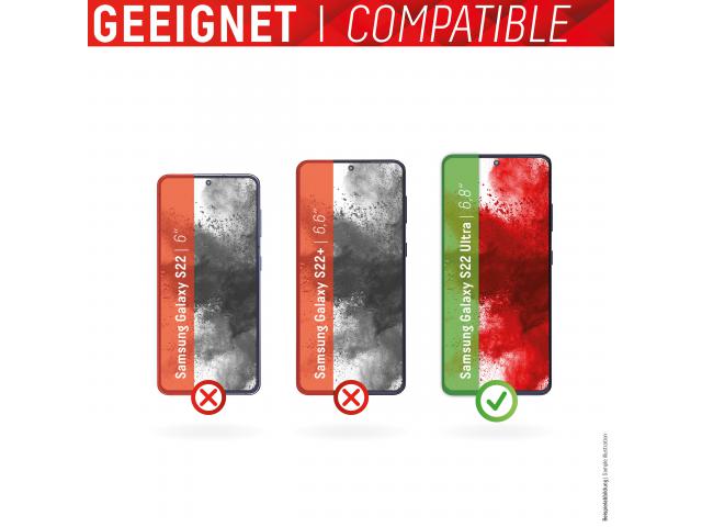Savršeno pristajanje: zaštitno staklo za zaslon dizajnirano je tako da odgovara Galaxy S22 Ultra. Zbog integriranog filtera privatnosti skener otiska prsta ne radi sa zaštitnim staklom.