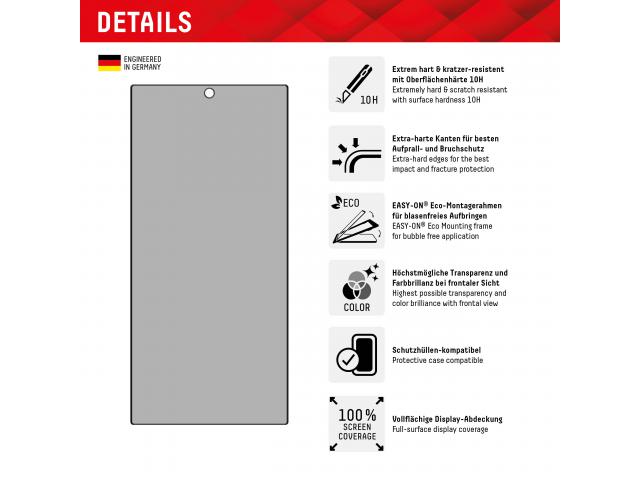 Savršeno pristajanje: Zaštitno staklo za zaslon dizajnirano je da odgovara Galaxy S24 Ultra. Zbog integriranog filtera privatnosti skener otiska prsta ne radi sa zaštitnim staklom.
