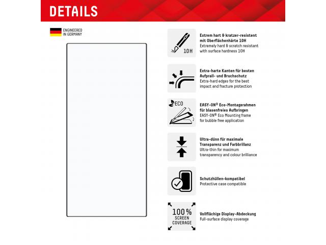 Potpuna pokrivenost zaslona: Za veću sveobuhvatnu zaštitu i bolju upotrebljivost, Full Cover i 3D staklene zaštite zaslona tvrtke Displex pokrivaju cijelo područje zaslona.