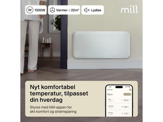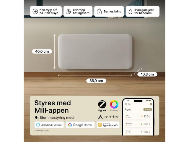 Mill Invisible Smart WiFi Panel Heater generacije 4 je visokotehnološki i energetski učinkovit panelni grijač čistog, modernog izgleda koji se besprijekorno uklapa u sve vrste domova. Mill grijači dizajnirani su u Norveškoj i dolaze u minimalističkom skandinavskom dizajnu. S podrškom za Matter, Zigbee 3.0 i WiFi, ovo je jedan od najpripremljenijih grijača na tržištu - spreman za pametni dom, bez obzira na platformu koju koristite.