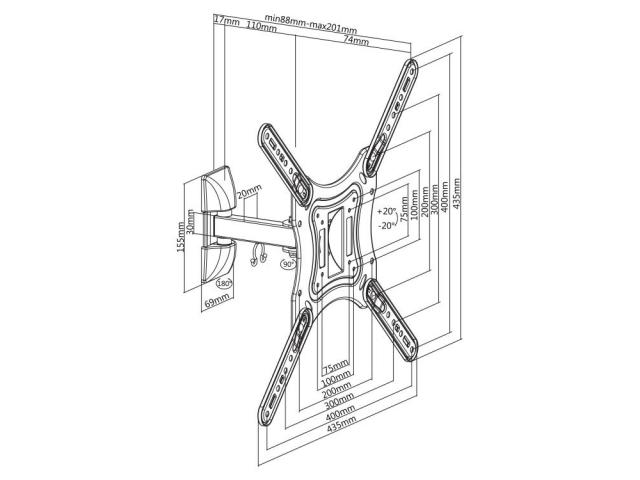 Veličina ekrana: 23“ - 55“ / 58 - 140 cm