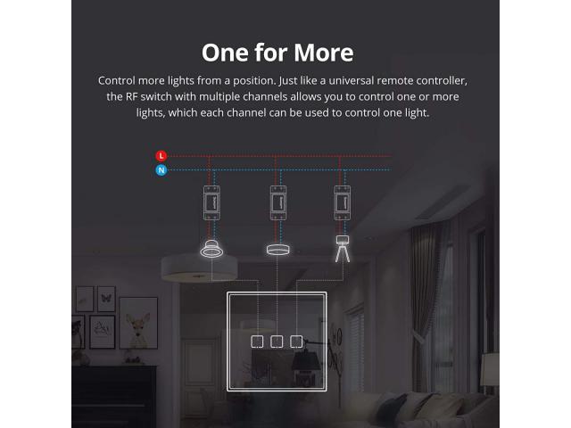 - Kompatibilnost: Prekidač je RF daljinski upravljač od 433,92MHz, tako da odgovara svim Sonoff proizvodima s 433MHz RF funkcijom, kao što su Sonoff TX, RFR2 / RF3, 4CHPROR2 / R3, SlampherR2, itd.