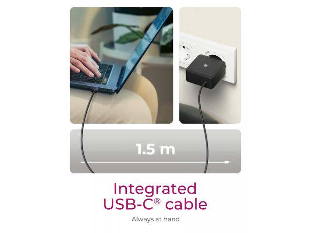 Iskoristite snagu od 65 W sa USB Power Delivery 3.0, koja teče kroz neprimjetno integrirani kabel. Redefinirajući praktičnost i učinkovitost, dizajn osigurava brzo punjenje prilagođeno potrebama vašeg uređaja. Nema više zbrke kabela: samo čista, izravna energija kada i gdje je najvažnije.